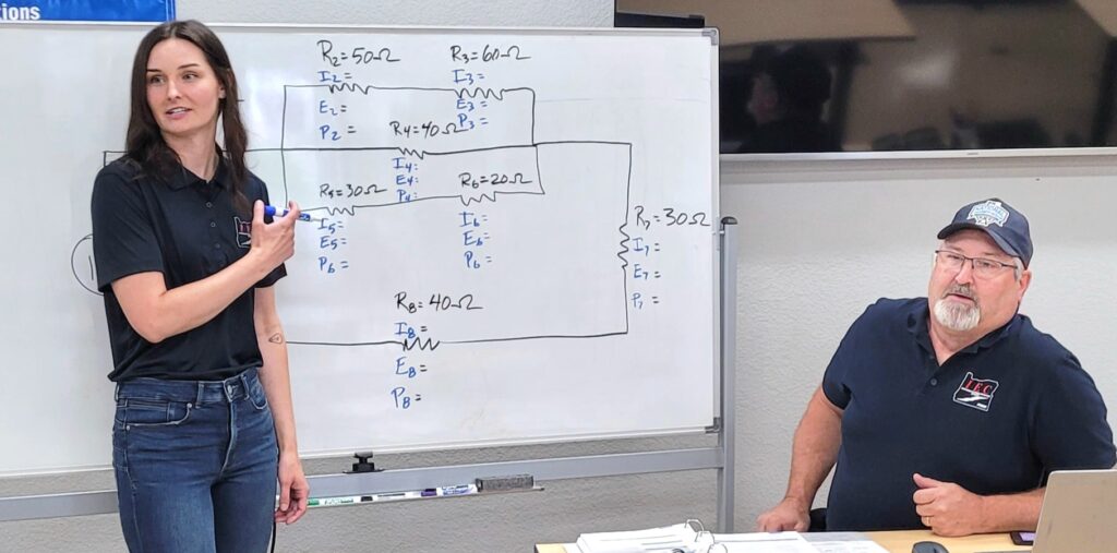 Cheat sheets, workbooks, review, and any and all methods are utilized by Ralph and Haley so that the students gain knowledge and confidence for the jobsite. Sometimes, teaching preparation helps them expand their own knowledge. Ralph cites combination circuits as something he struggled with in his apprenticeship. When you have to teach it and field questions on it, you solidify your knowledge and understanding he says.