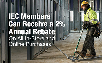*IEC members must be signed up for Pro Xtra using the agreement code IEC and spend a minimum of $12,500 to be eligible for a rebate. The rebate period is from January 1 through December 31, with rebate payments issued within 60 days after the program end date. For more information on the Pro Xtra program, visit homedepot.com/c/ProXtra_TermsandConditions.