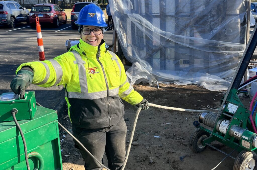 She likes that every day is different — she enjoys rough-in work, bringing wires to receptacles, troubleshooting and tracing circuits, digging (though it was easier to dig in always warm Florida than Connecticut), generators and transformers, and learning to work with the other trades involved in projects.
