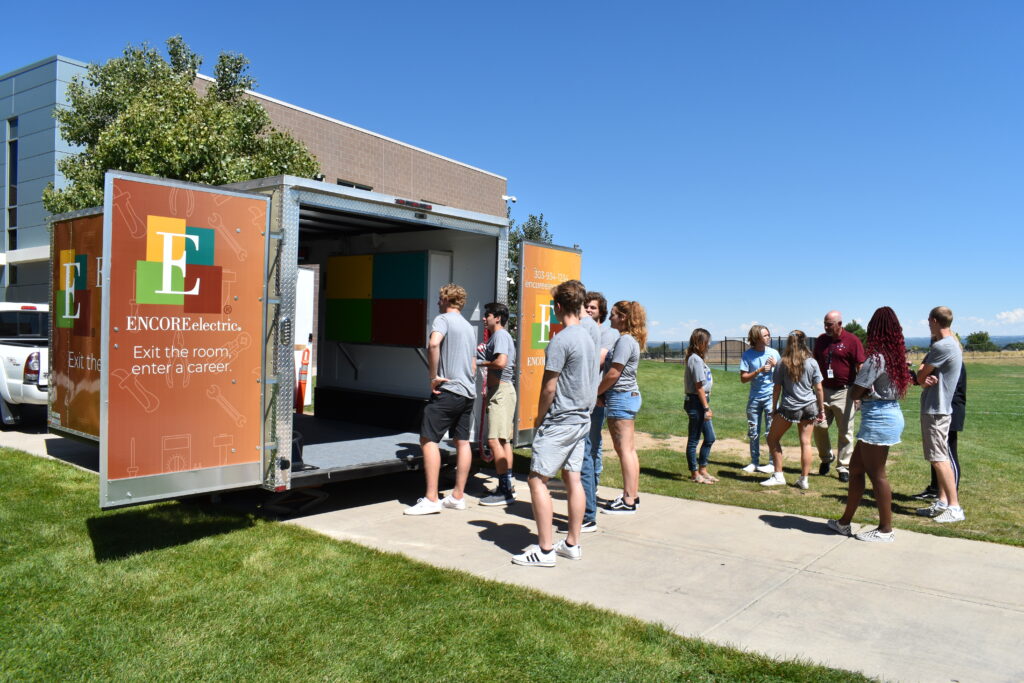 The Encore team kept brainstorming and ELMER was the result. Executive Director Dale Weis, IEC Southern Colorado, found the trailer that eventually became ELMER. The Encore team designed and built the escape room challenges using everyday technology that the kids would recognize and feel comfortable using. In 2022, ELMER visited about 30 schools and events throughout Colorado.